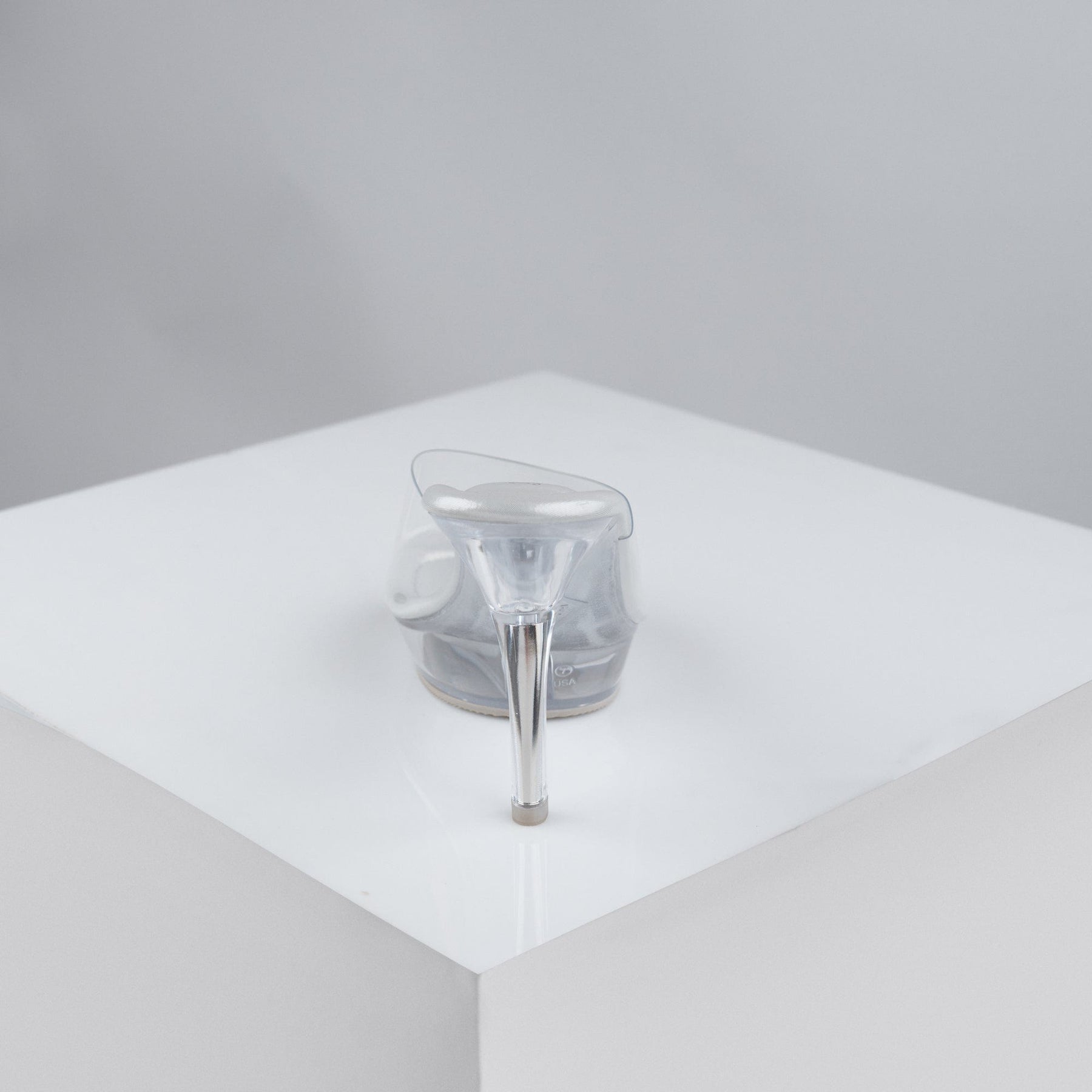• Vegan heels with gray bottoms for an ultra sleek finish